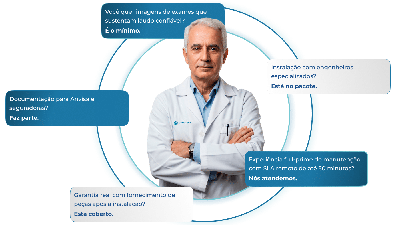 Somos parceiros de hospitais, centros de diagnóstico e clínicas de radiologia que exigem segurança para operar e inteligência para crescer.